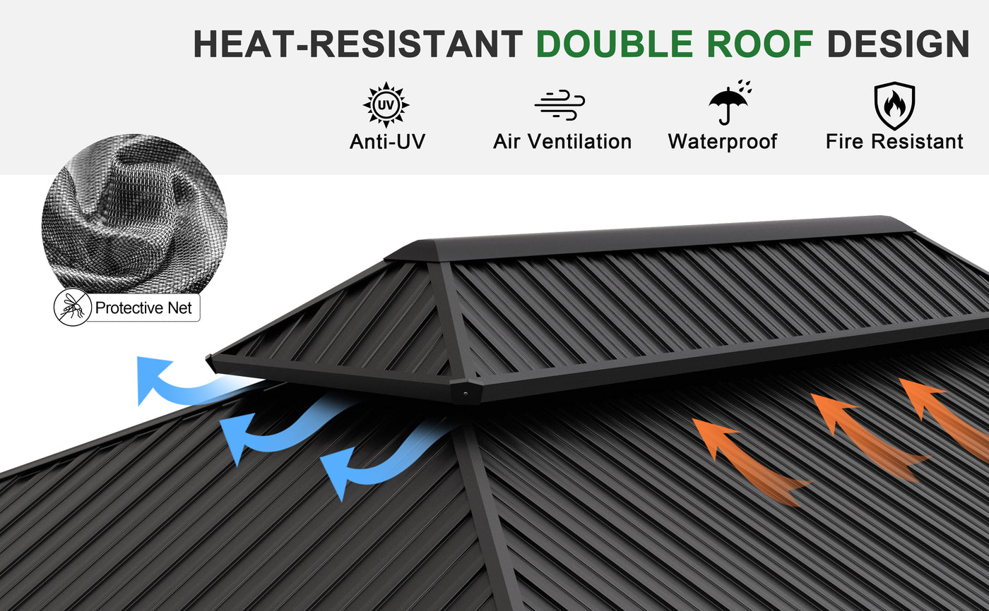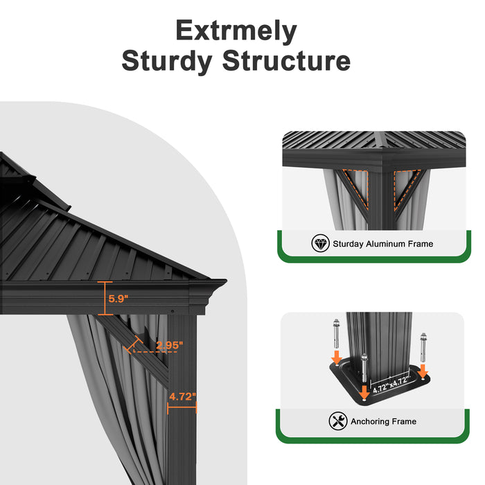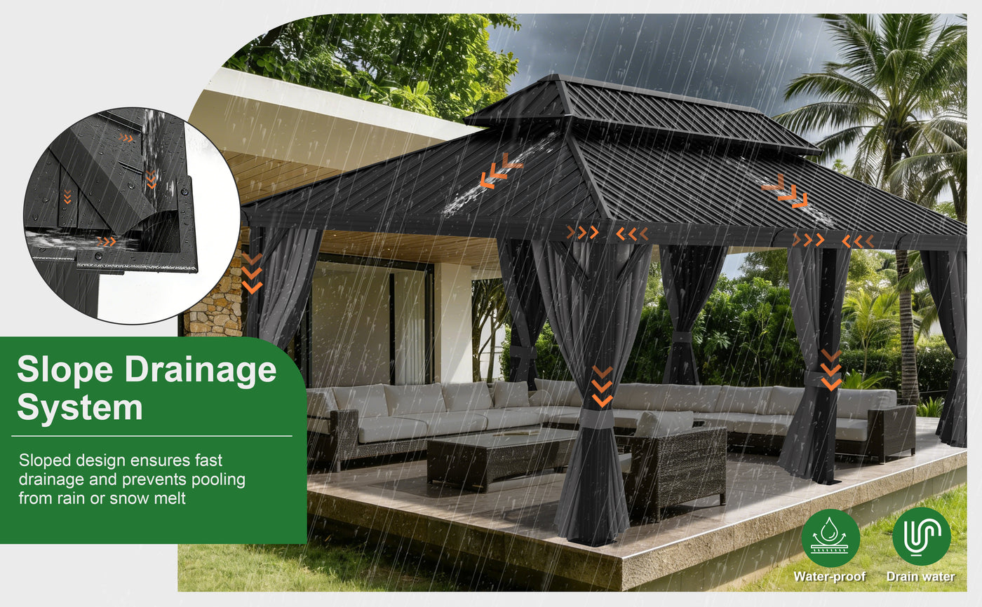 Efficient Drainage Design: Allows rainwater to flow off easily, keeping the gazebo in great condition.