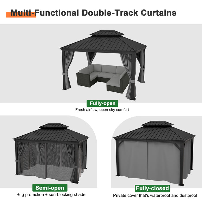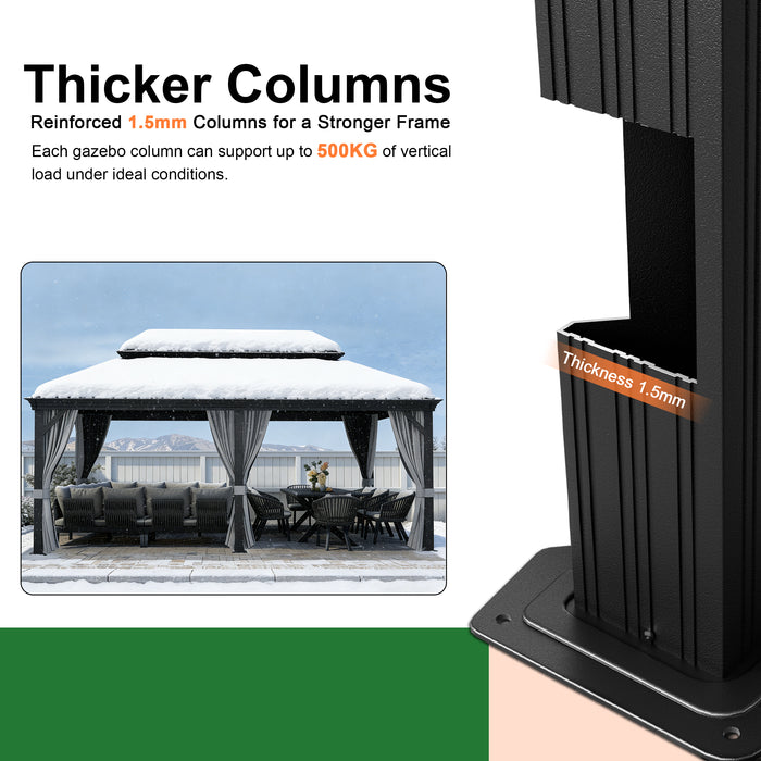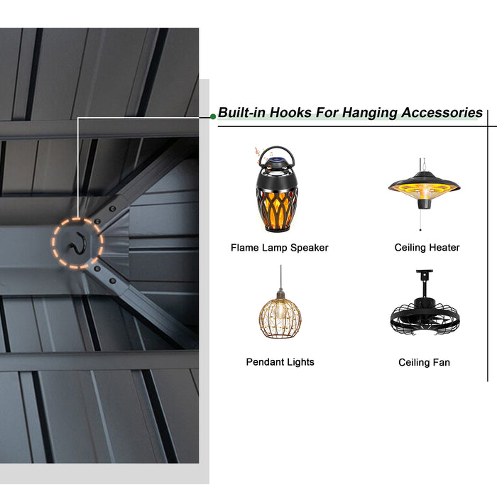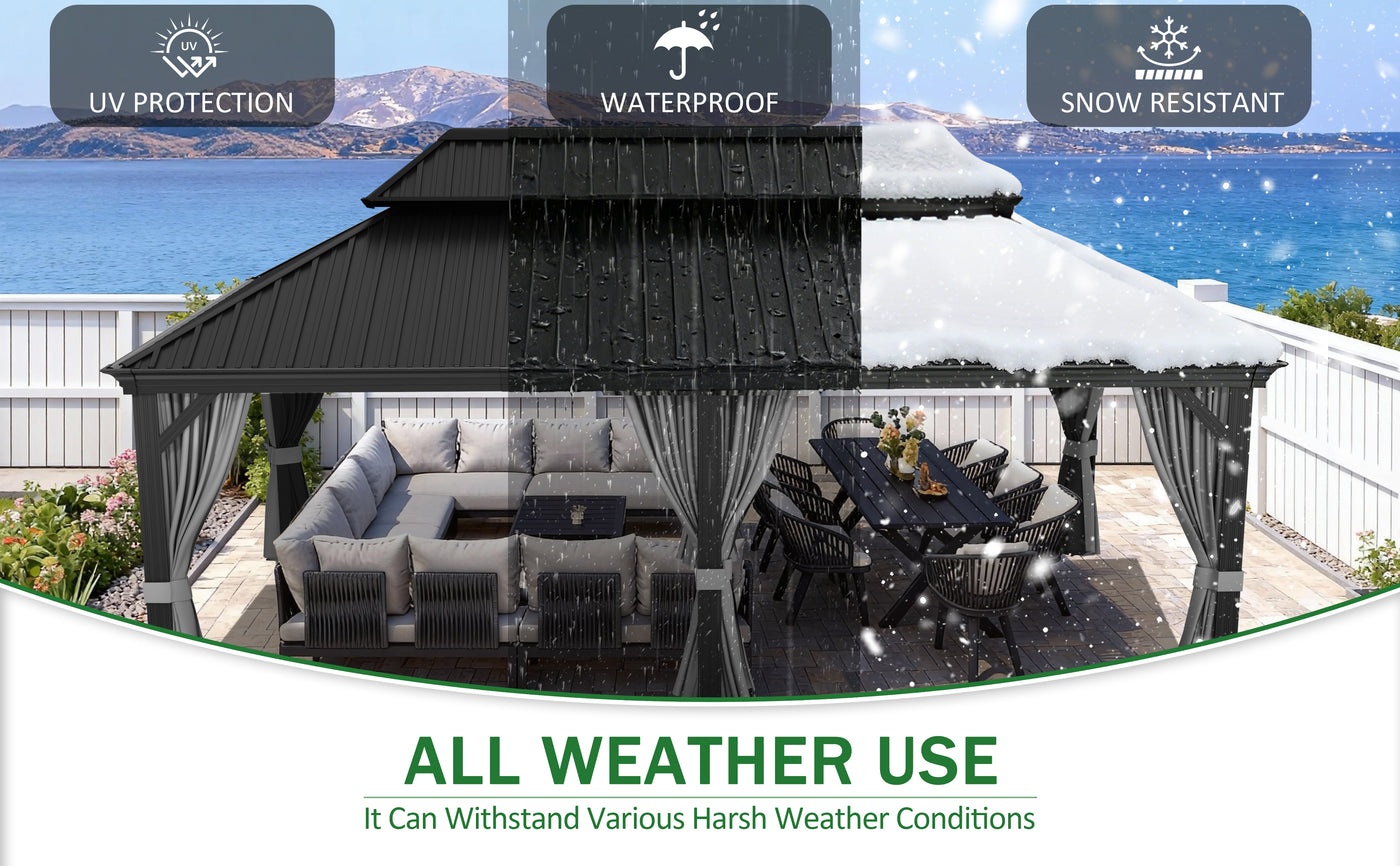 This waterproof system keeps the gazebo dry and durable year-round.